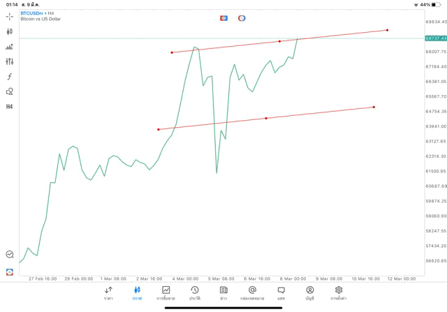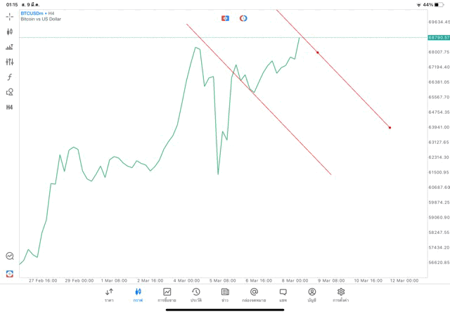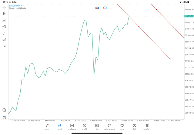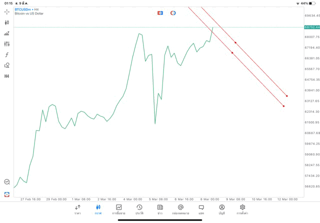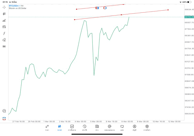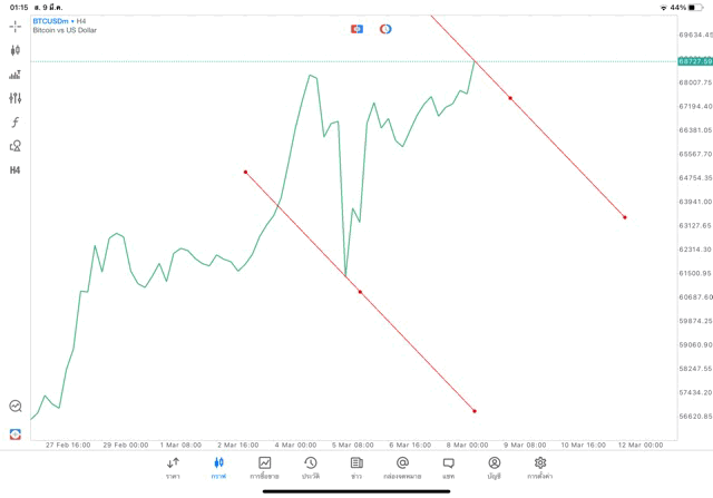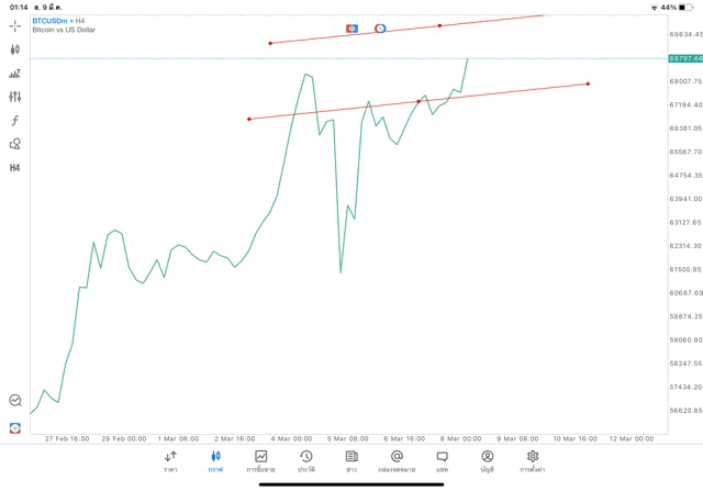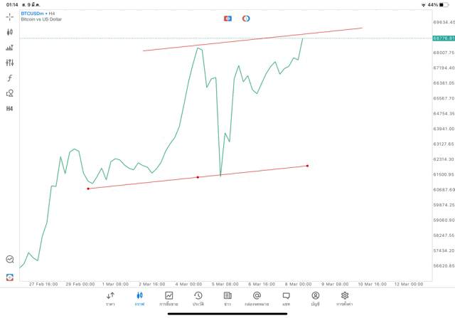 การวาด Trendline H4 Crypto BTCUSD application Meta trader 5 หรือ mt5 โบรกเกอร์ forex exness