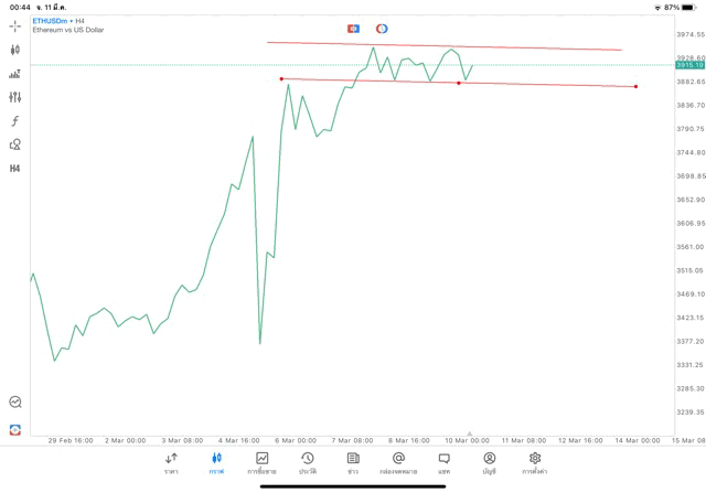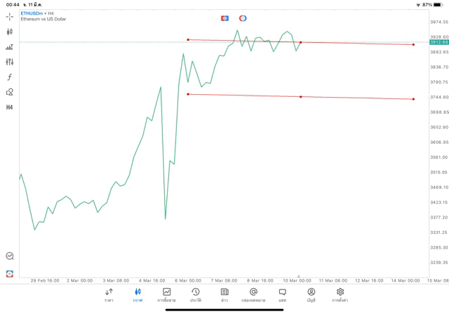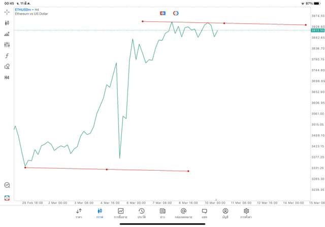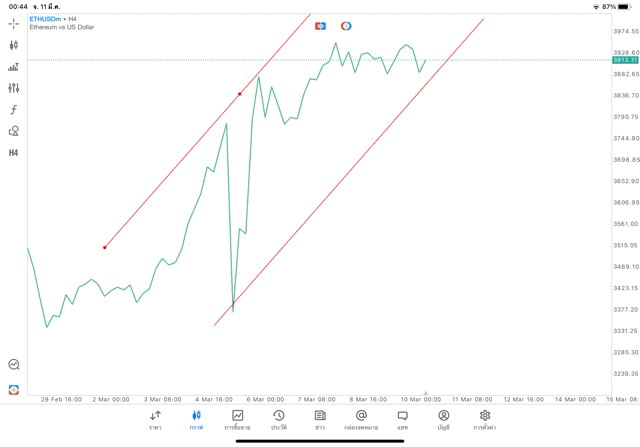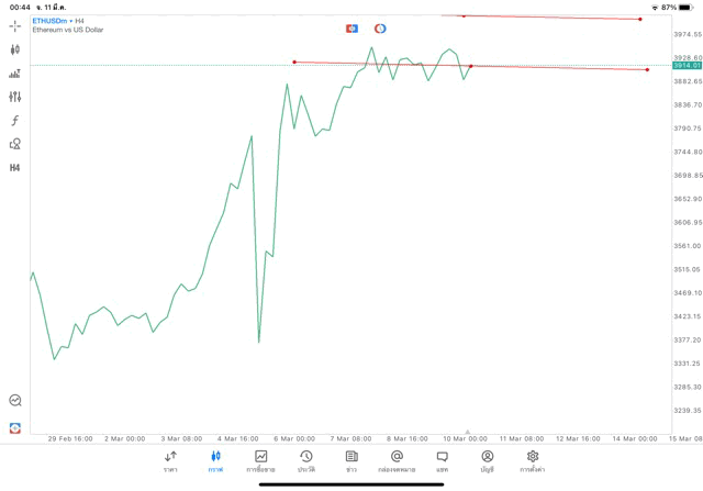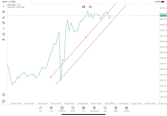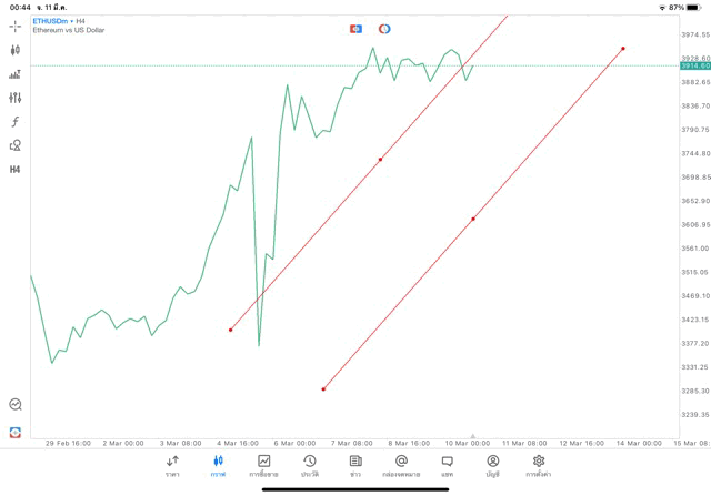 การวาด Trendline H4 Crypto ETHUSD application Meta trader 5 หรือ mt5 โบรกเกอร์ forex exness