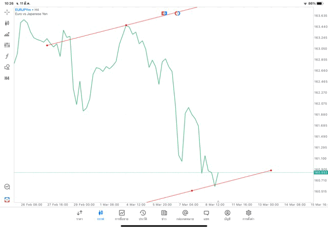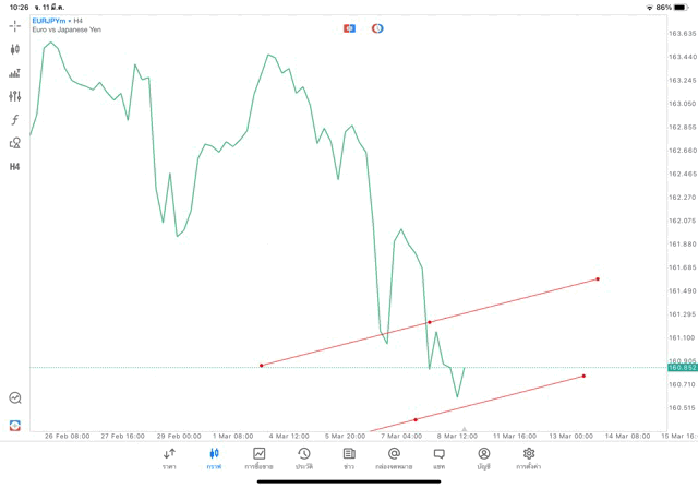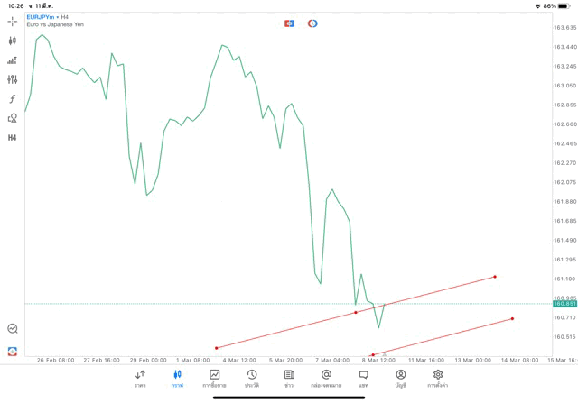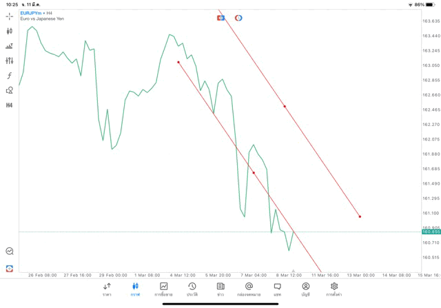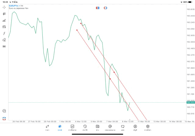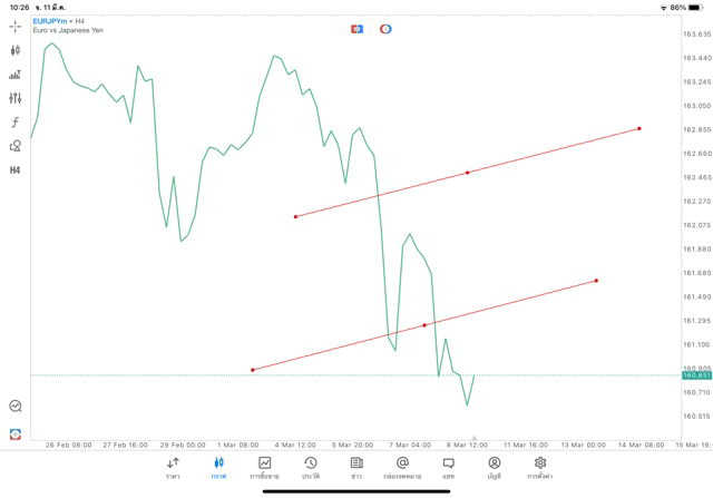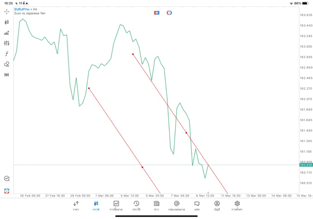 การวาด Trendline H4 Forex EURJPY application Meta trader 5 หรือ mt5 โบรกเกอร์ Forex exness