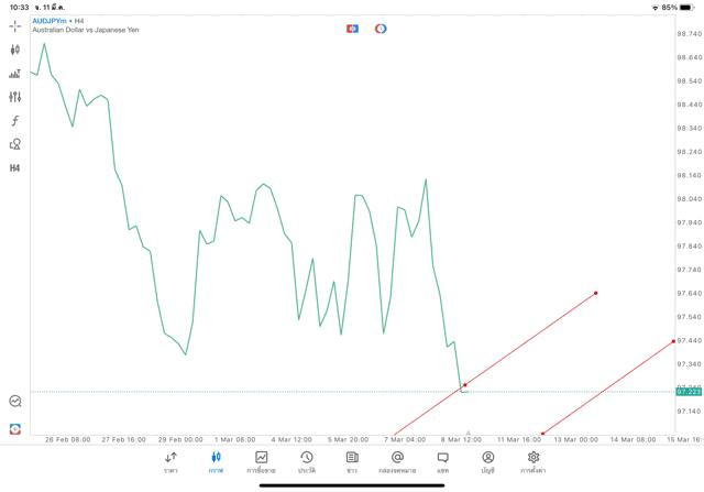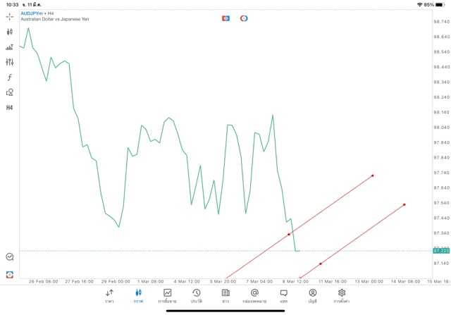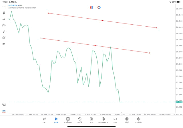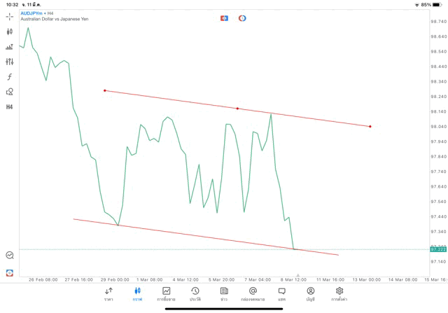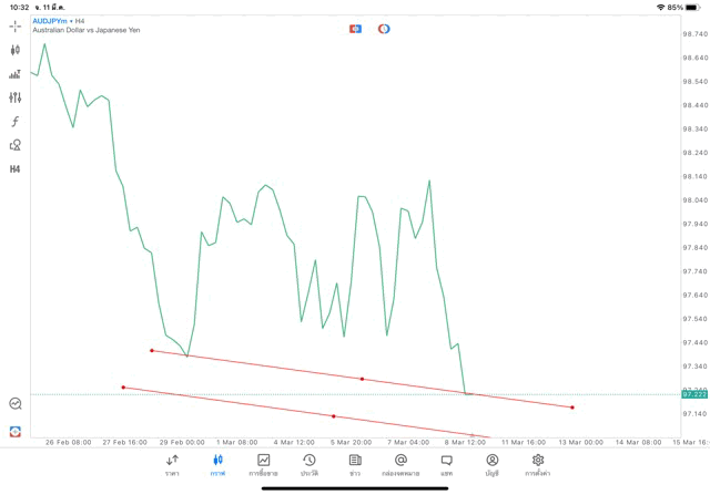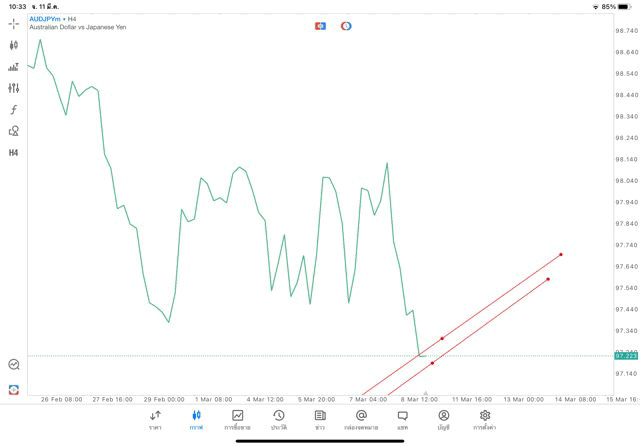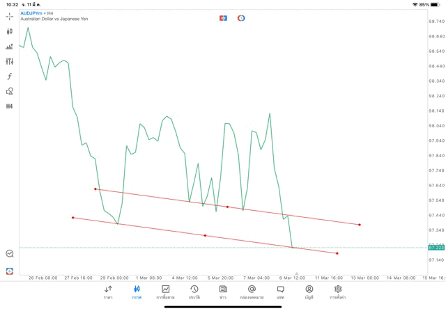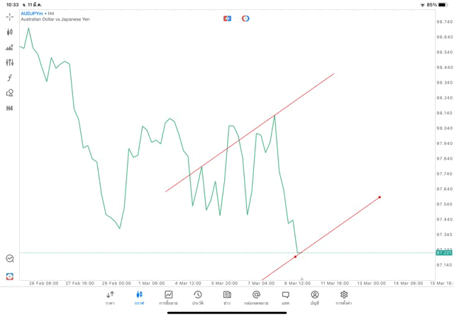 การวาด Trendline H4 Forex AUDJPY application Meta trader 5 หรือ mt5 โบรกเกอร์ Forex exness