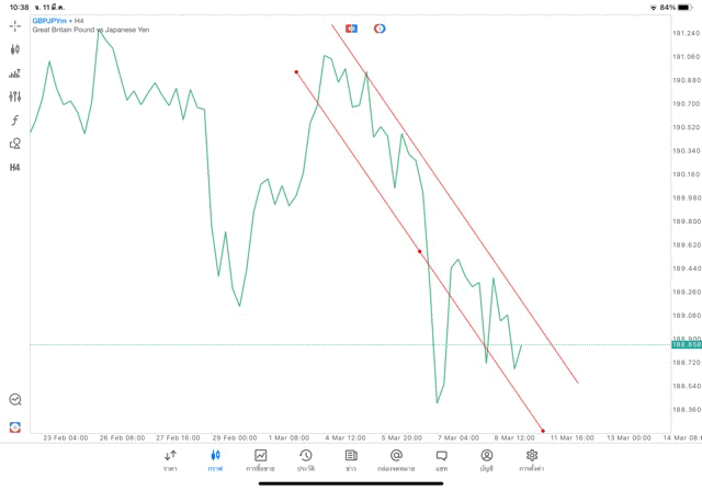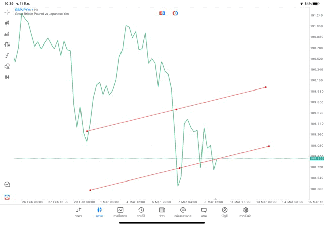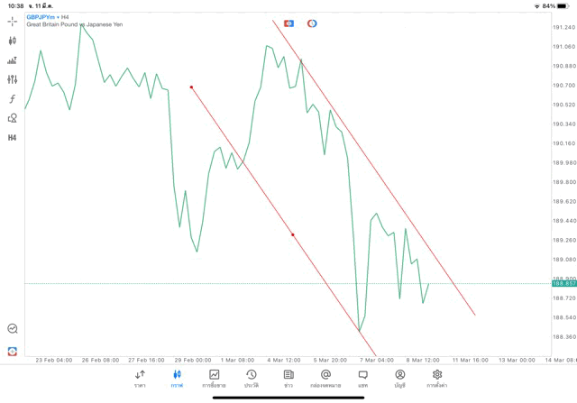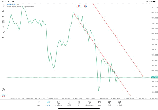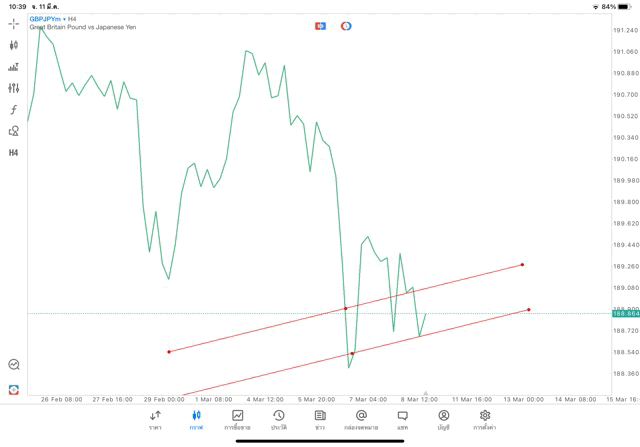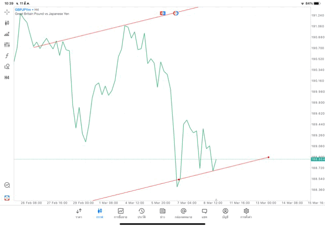 การวาด Trendline H4 Forex GBPJPY application Meta trader 5 หรือ mt5 โบรกเกอร์ forex exness