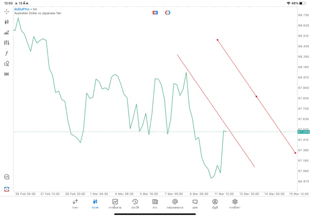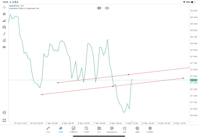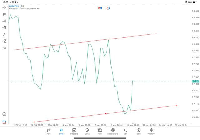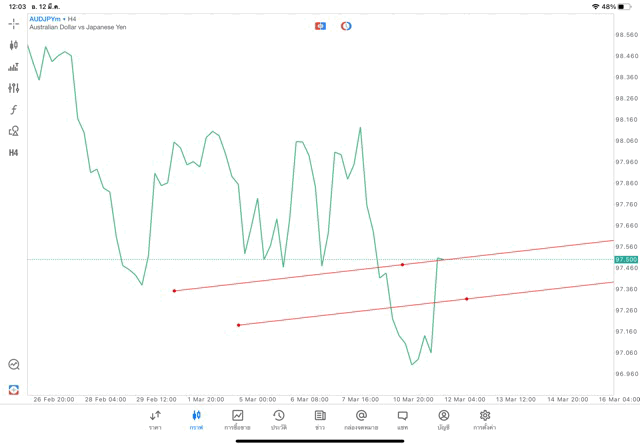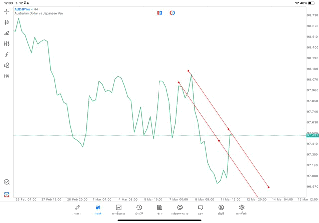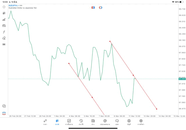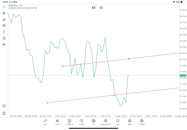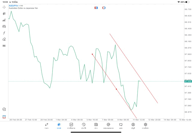 การวาด Trendline H4 Forex AUDJPY application Meta trader 5 หรือ mt5 โบรกเกอร์ Forex exness