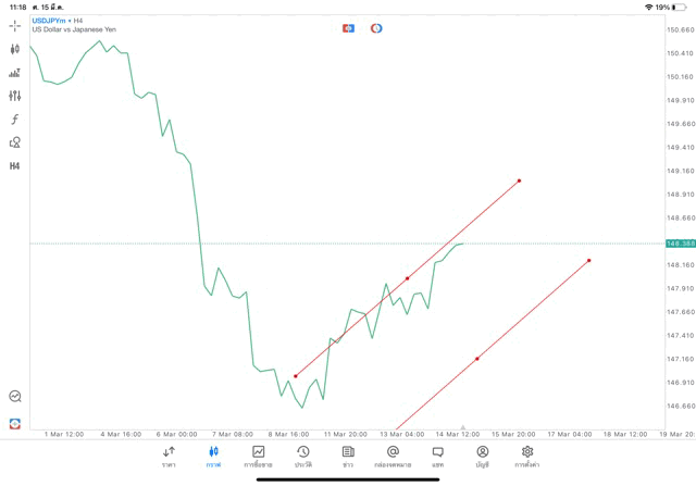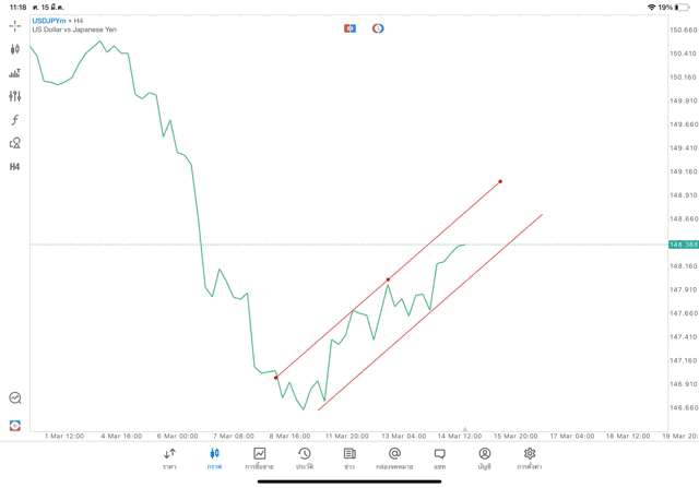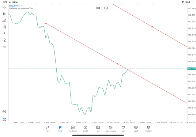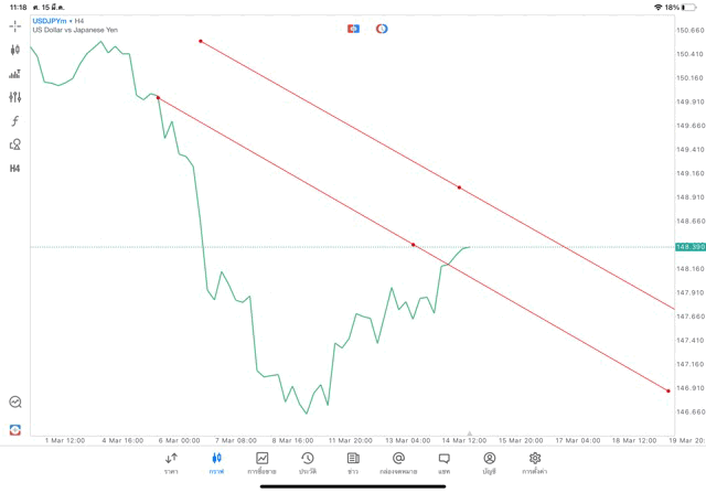 การวาด Trendline H4 Forex USDJPY application Meta trader 5 หรือ mt5 โบรกเกอร์ Forex exness