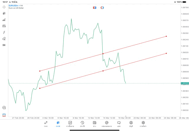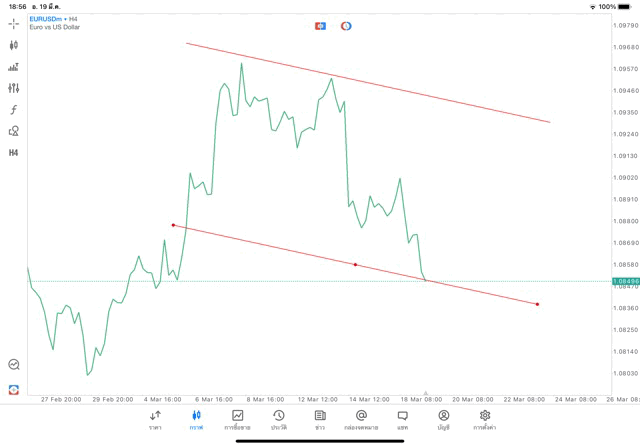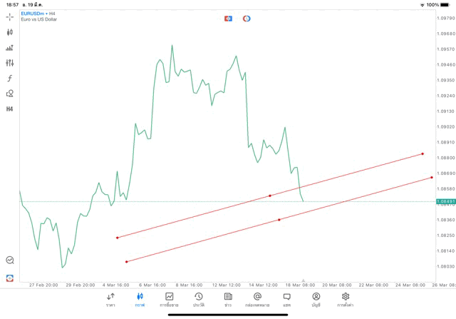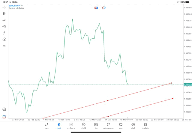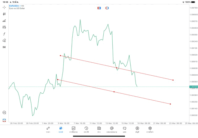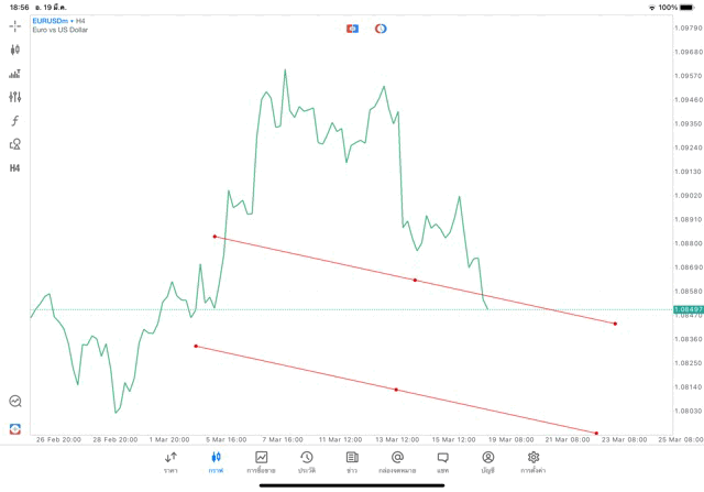 การวาด Trendline H4 Forex EURUSD application Meta trader 5 หรือ mt5 โบรกเกอร์ forex exness