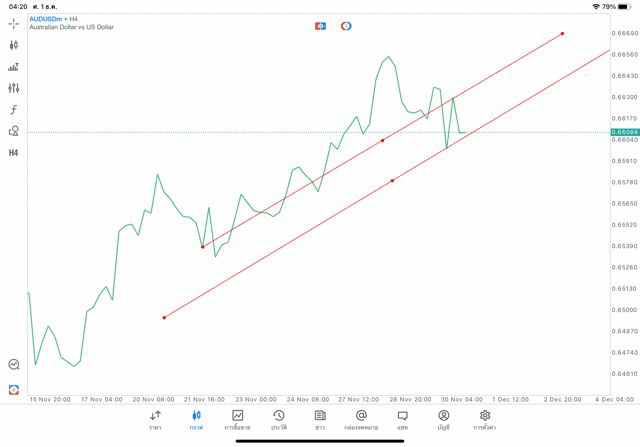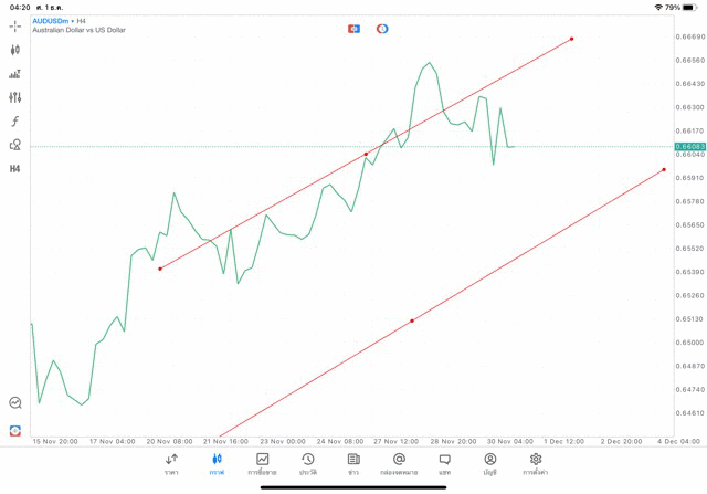 การวาด Tradeline H4 Forex AUDUSD application Meta trader 5 หรือ mt5 โบรกเกอร์ Forex exness