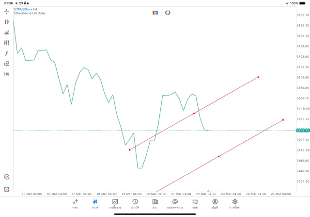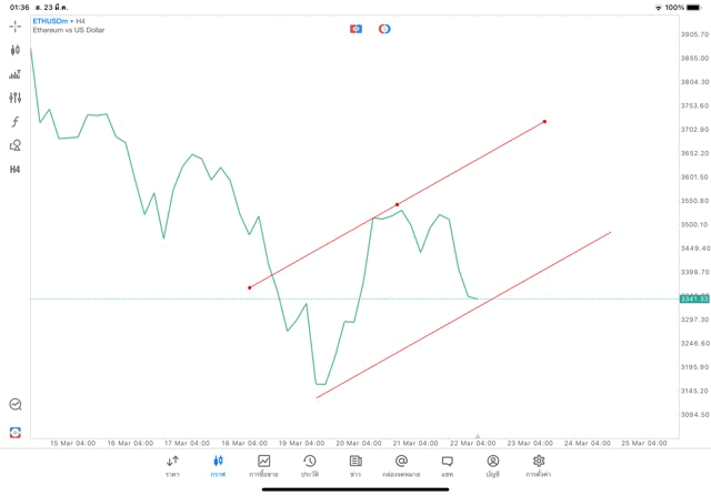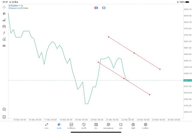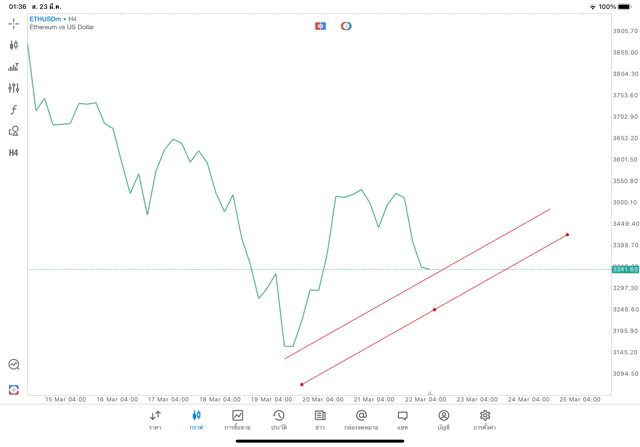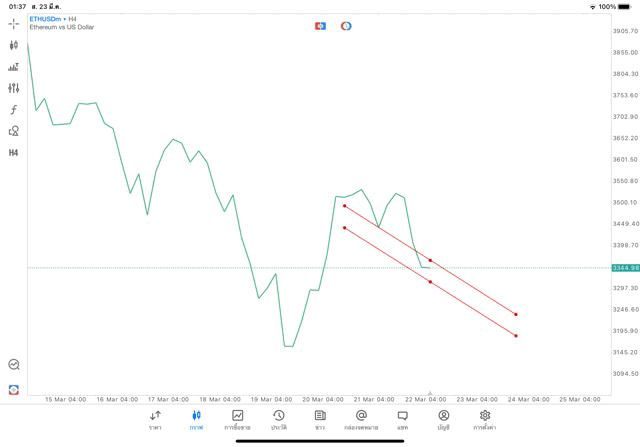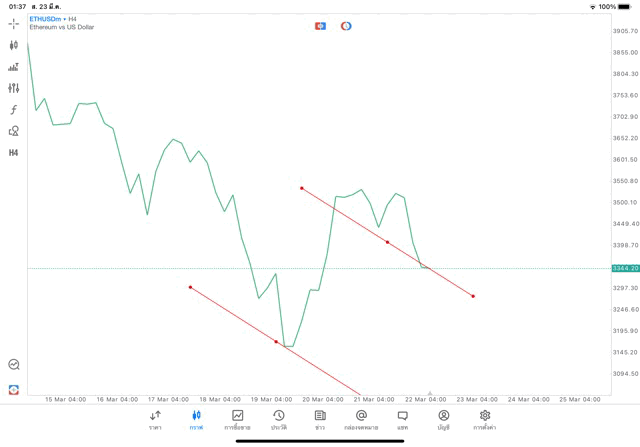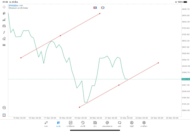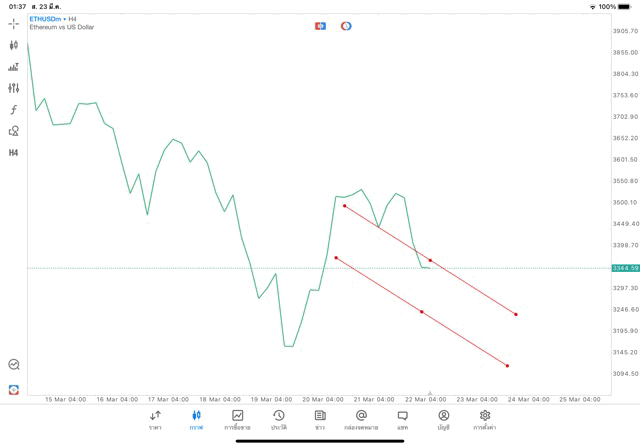 การวาด Trendline H4 Crypto ETHUSD application Meta trader 5 หรือ mt5 โบรกเกอร์ forex exness