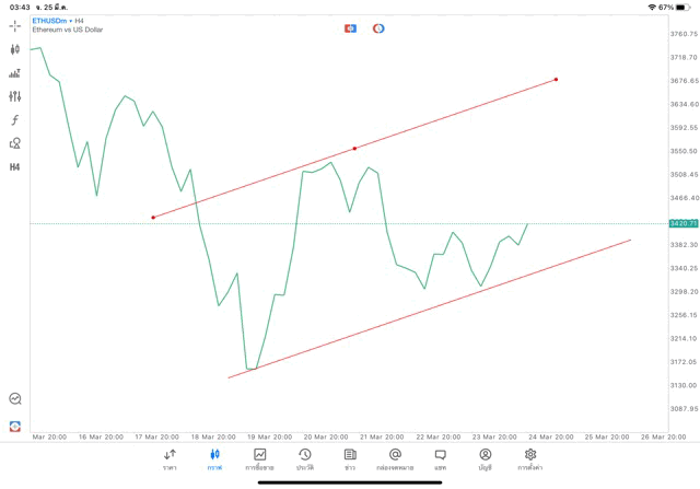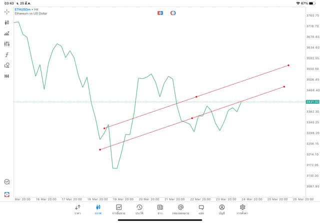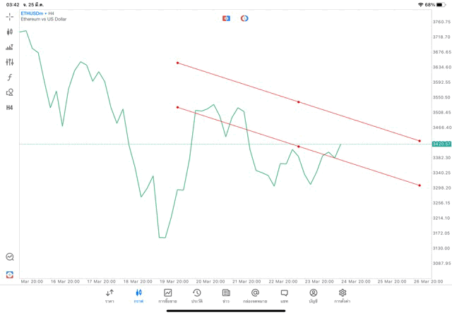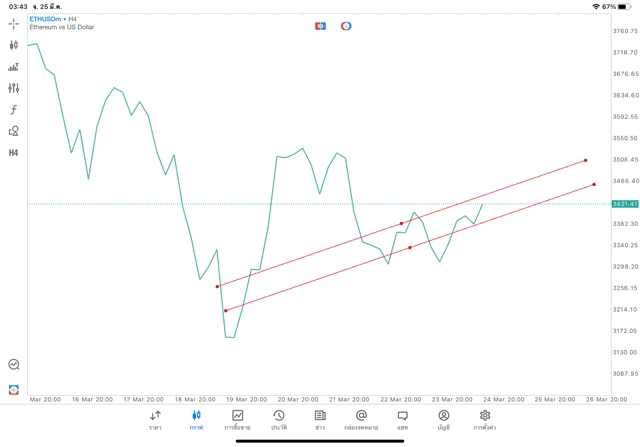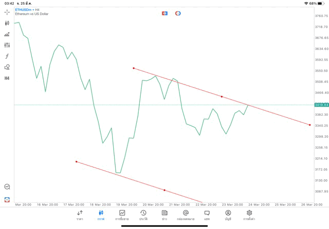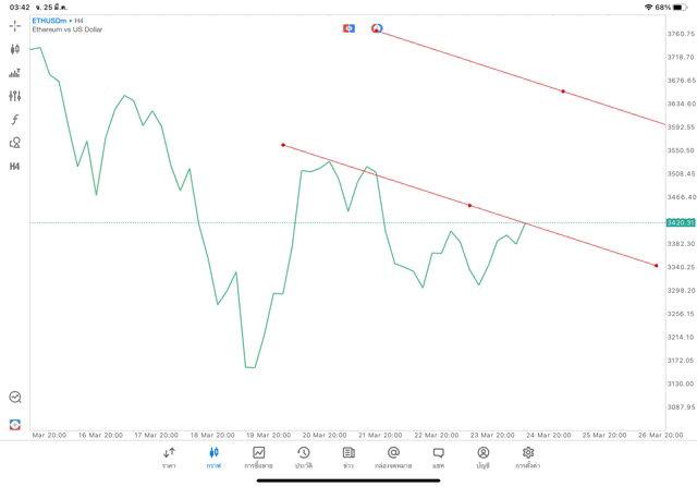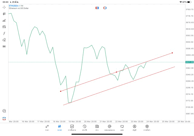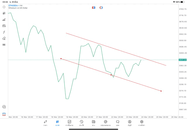 การวาด Trendline H4 Crypto ETHUSD application Meta trader 5 หรือ mt5 โบรกเกอร์ forex exness