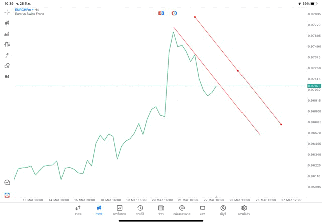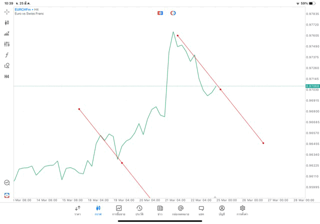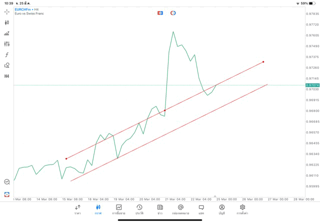 การวาด Trendline H4 Forex EURCHF application Meta trader 5 หรือ mt5 โบรกเกอร์ forex exness