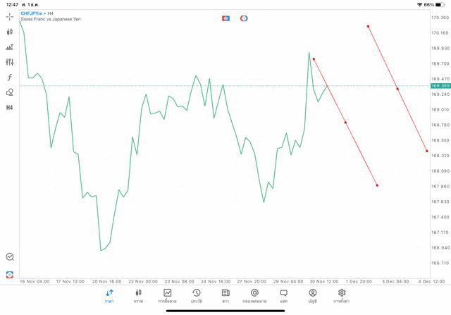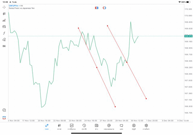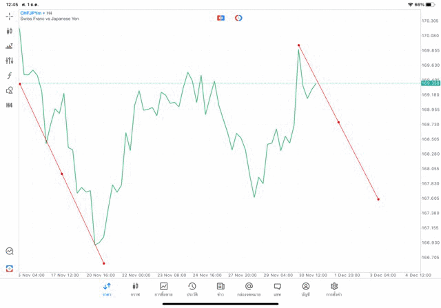 การวาด Tradeline H4 Forex CHFJPY application Meta trader 5 หรือ mt5 โบรกเกอร์ forex exness