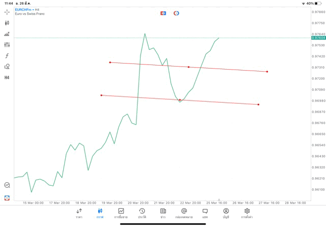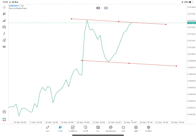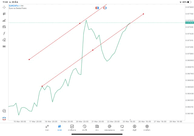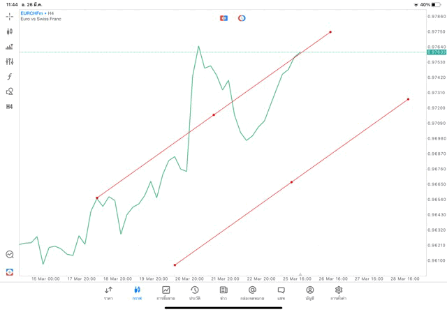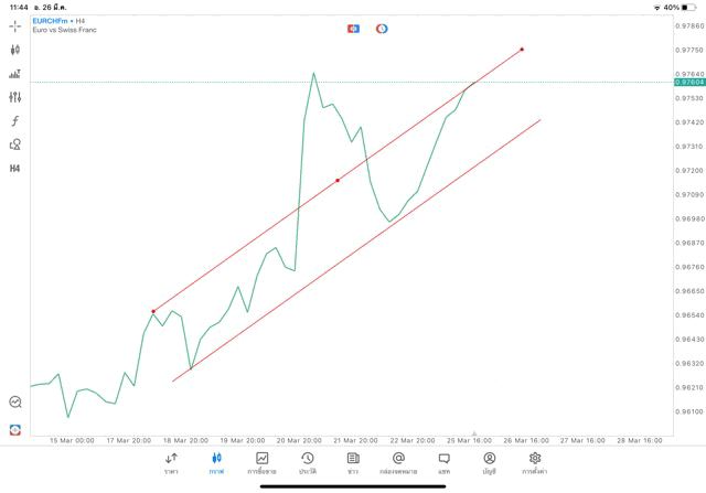 การวาด Trendline H4 Forex EURCHF application Meta trader 5 หรือ mt5 โบรกเกอร์ forex exness