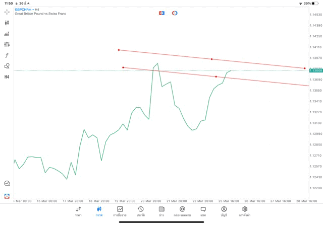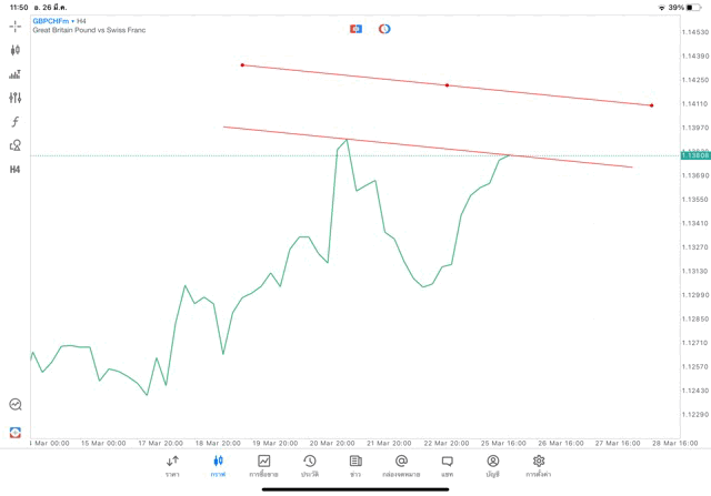 การวาด Trendline H4 Forex GBPCHF application Meta trader 5 หรือ mt5