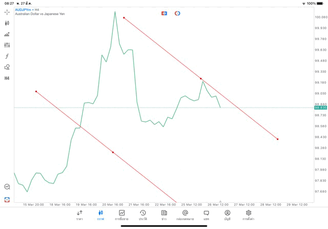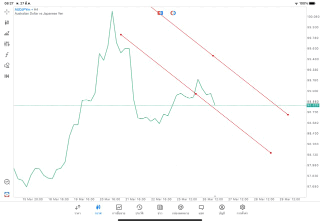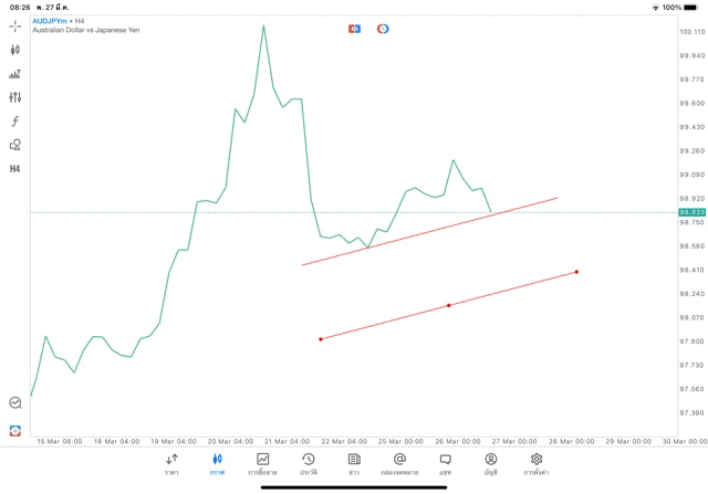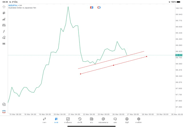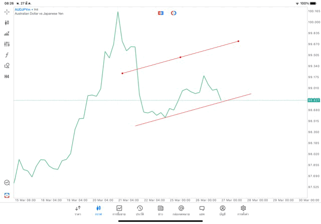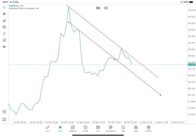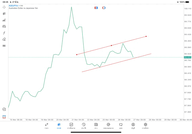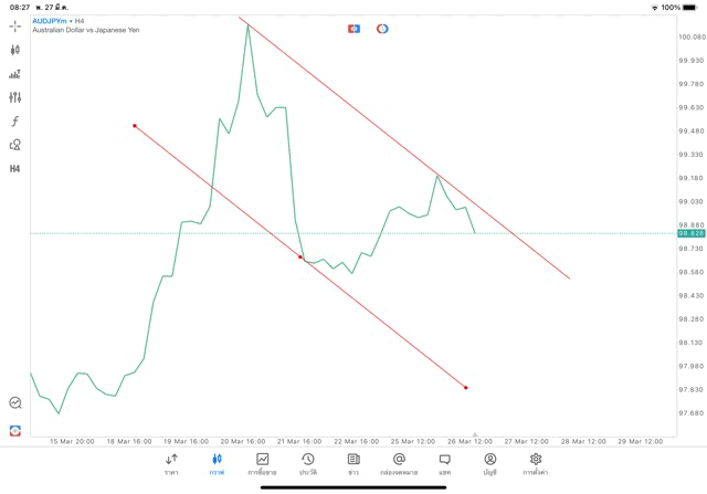 การวาด Trendline H4 Forex AUDJPY application Meta trader 5 หรือ mt5 โบรกเกอร์ Forex exness
