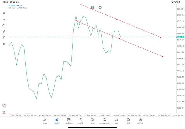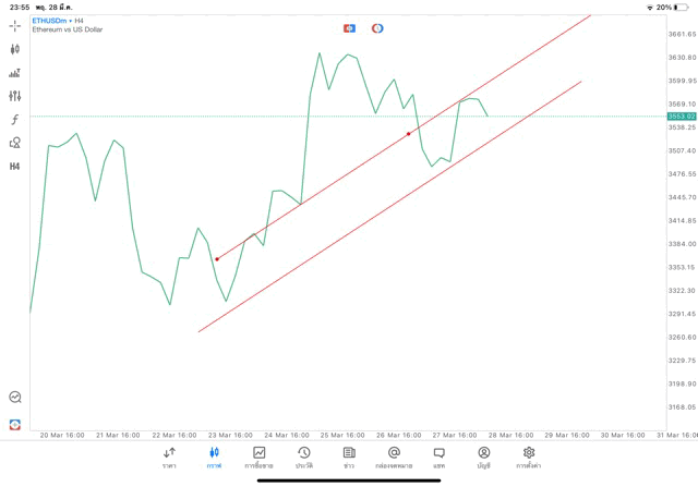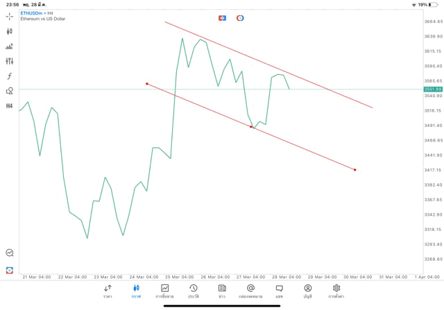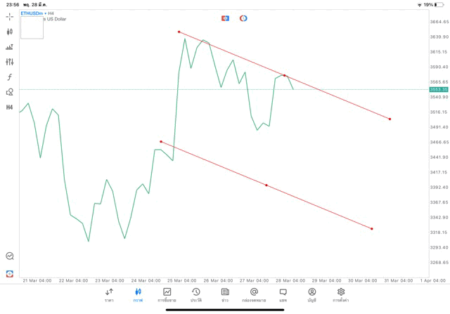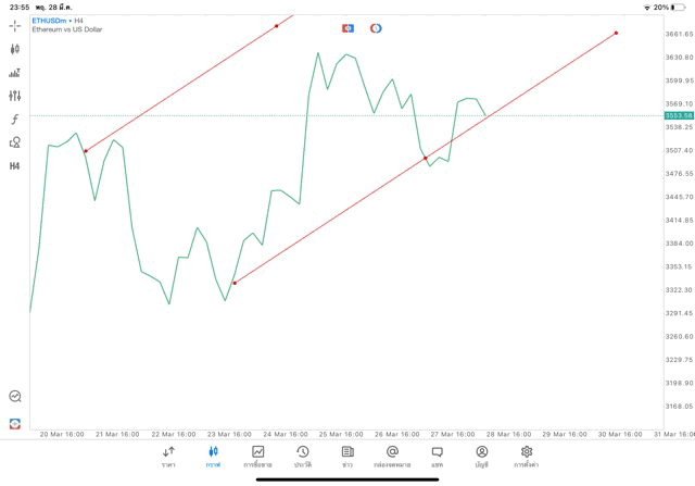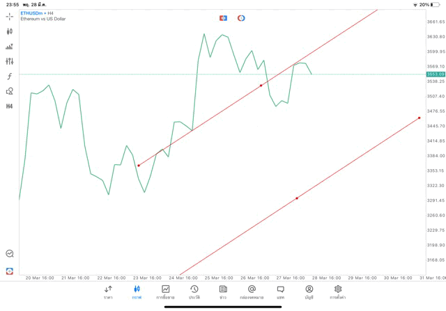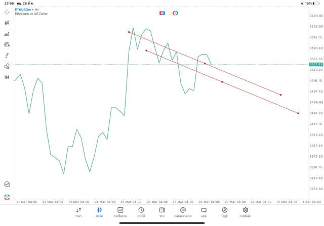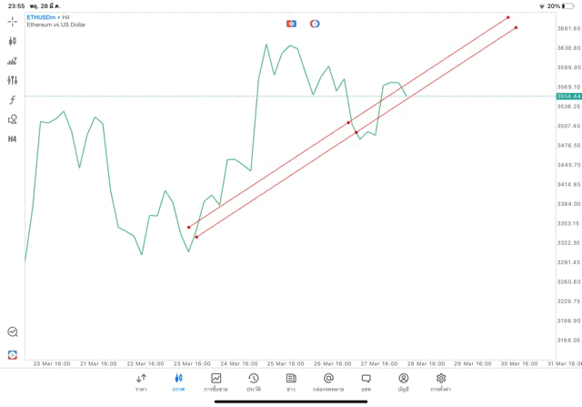 การวาด Trendline H4 Crypto ETHUSD application Meta trader 5 หรือ mt5 โบรกเกอร์ forex exness