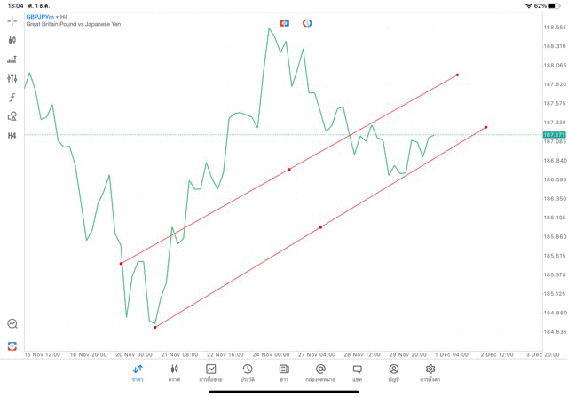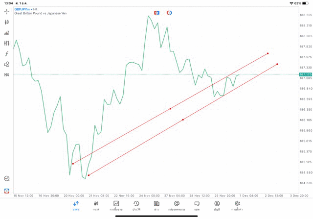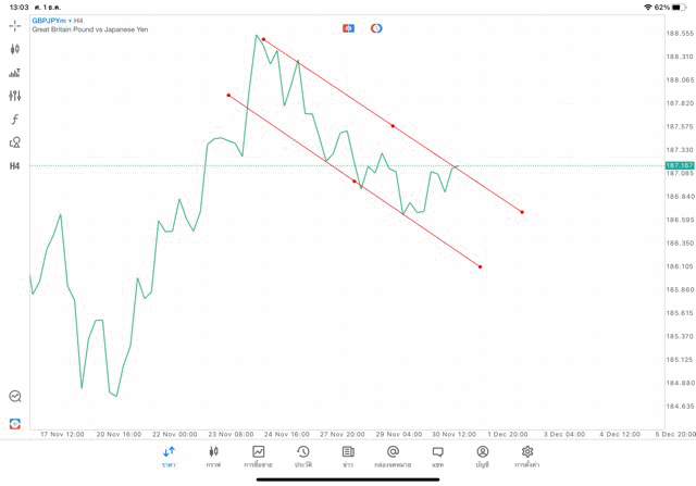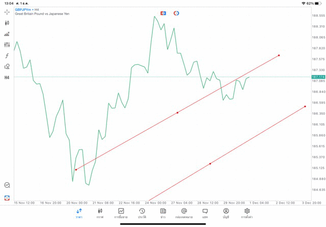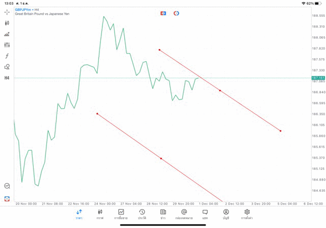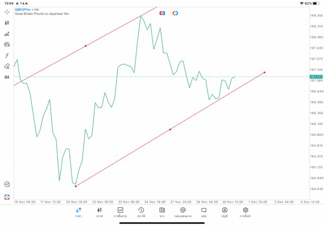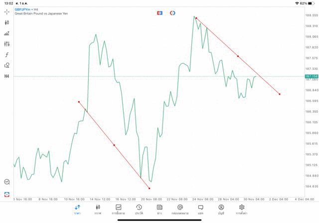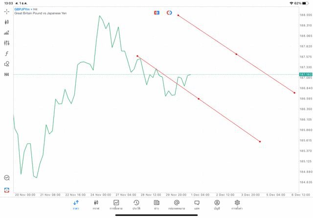 การวาด Tradeline H4 Forex GBPJPY application Meta trader 5 หรือ mt5 โบรกเกอร์ forex exness