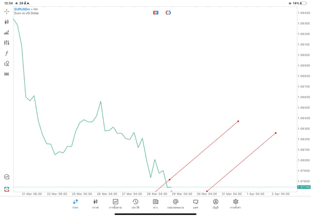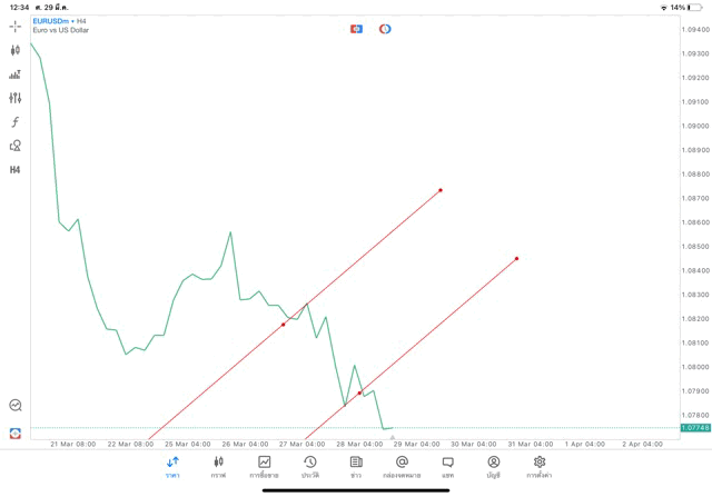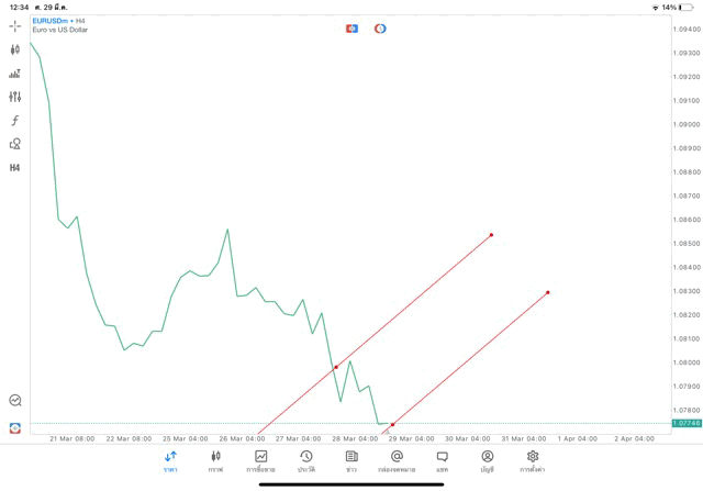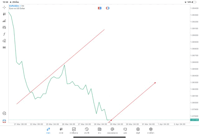 วิธีเปลี่ยน Timeframe และ เพิ่มเส้น Trendline แอพเล่นหุ้น mt5 – คลิ๊ก –