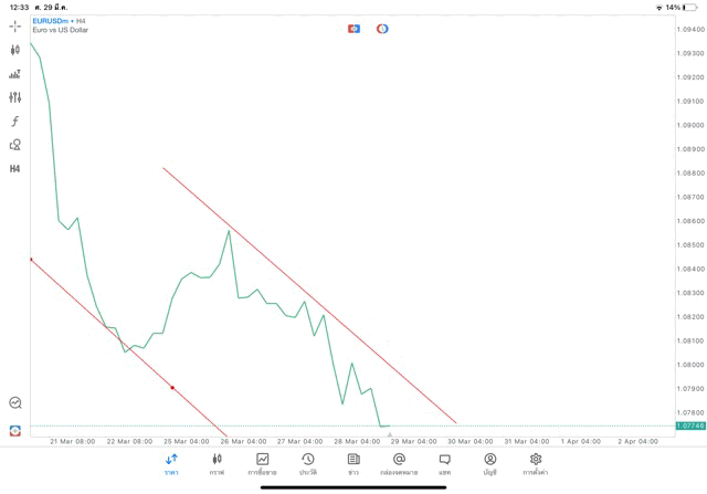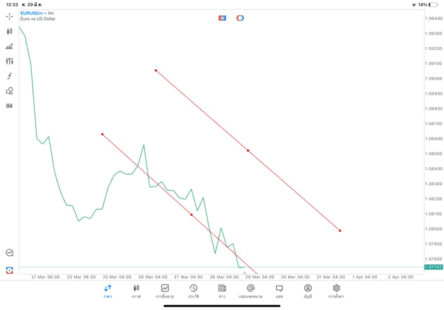 การวาด Trendline H4 Forex EURUSD application Meta trader 5 หรือ mt5 โบรกเกอร์ forex exness