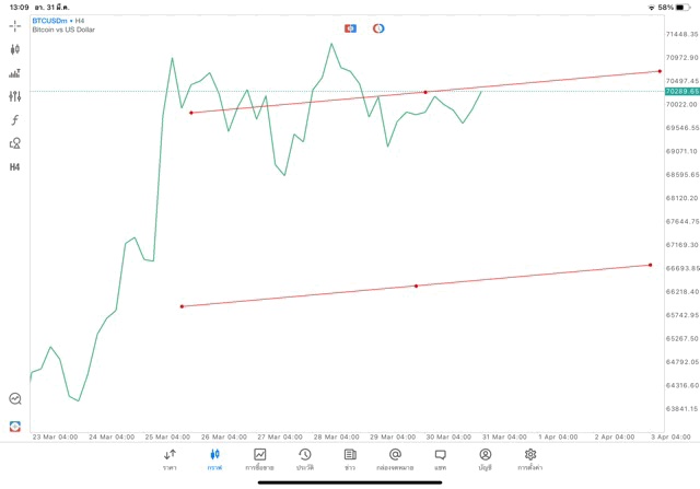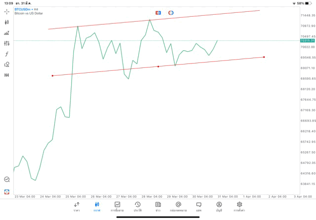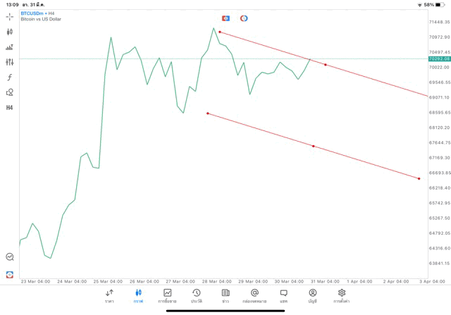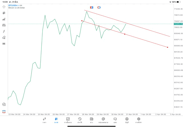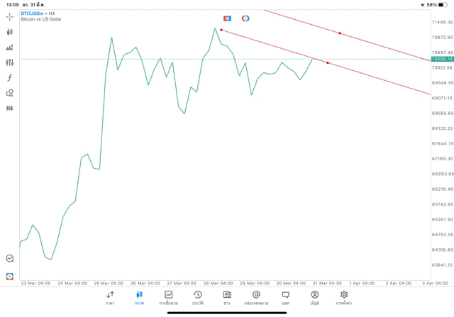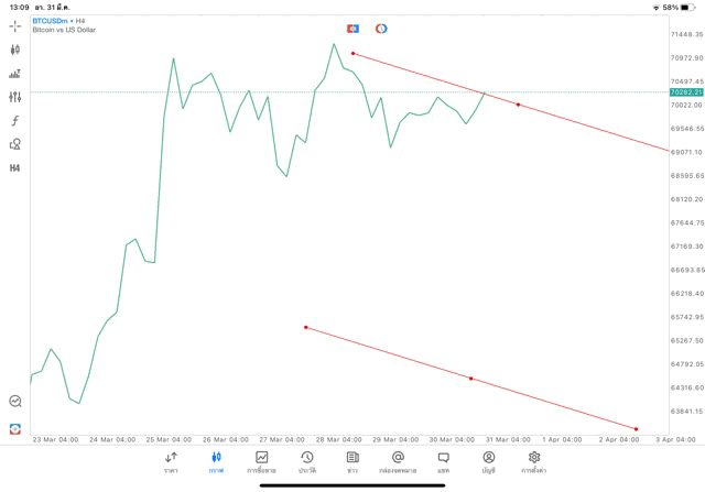 Crypto BTCUSD H4 Trendline 31/3/24