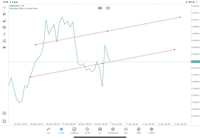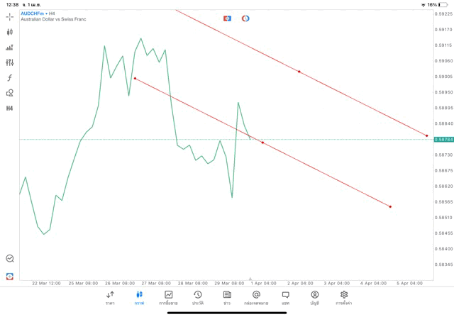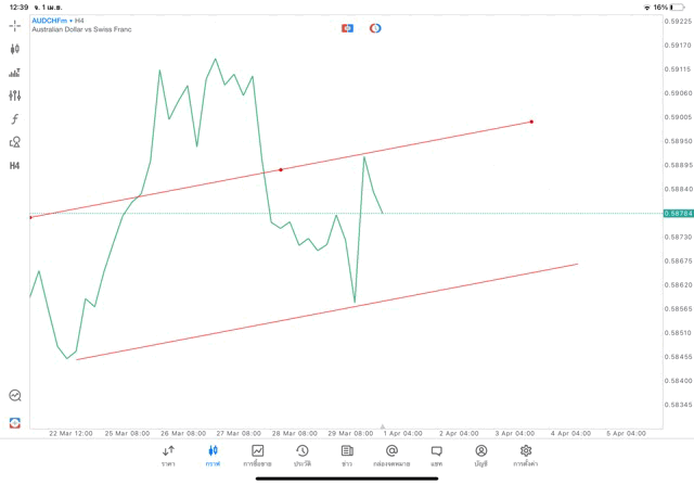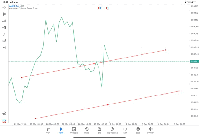 การวาด Trendline H4 Forex AUDCHF application Meta trader 5 หรือ mt5 โบรกเกอร์ Forex exness