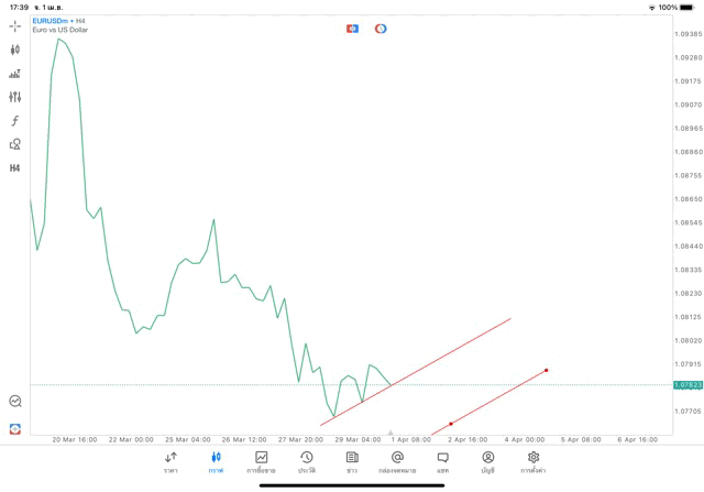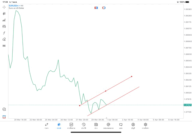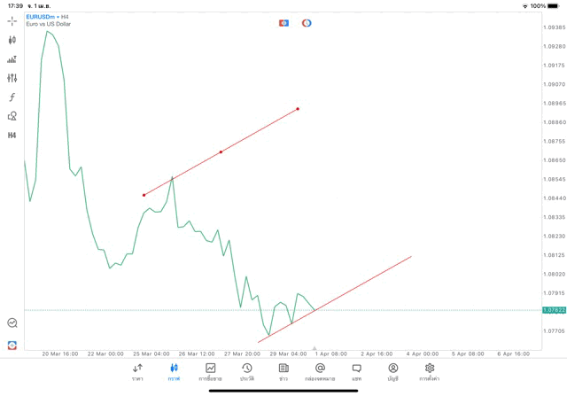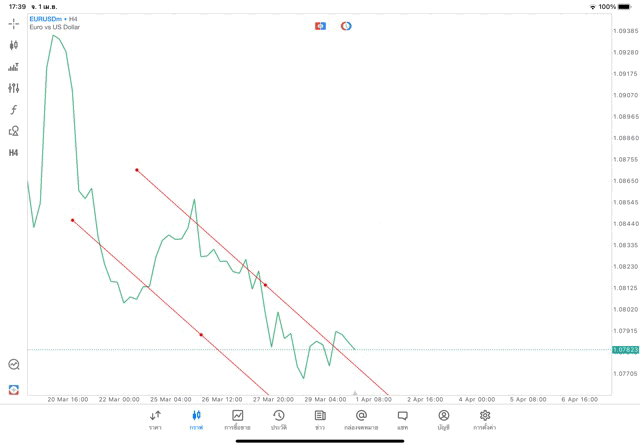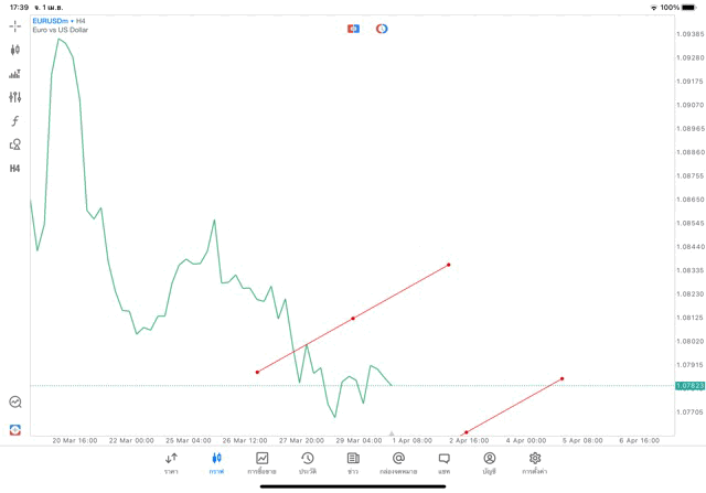 วิธีเปลี่ยน Timeframe และ เพิ่มเส้น Trendline แอพเล่นหุ้น mt5 – คลิ๊ก –