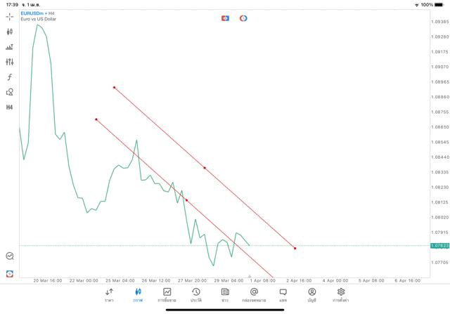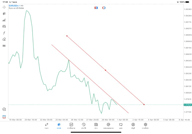 การวาด Trendline H4 Forex EURUSD application Meta trader 5 หรือ mt5 โบรกเกอร์ forex exness