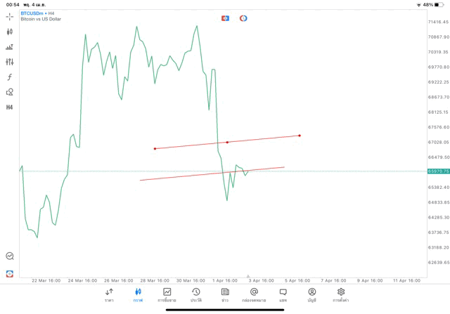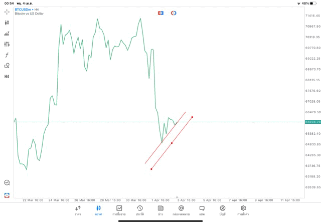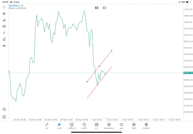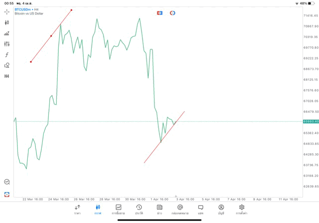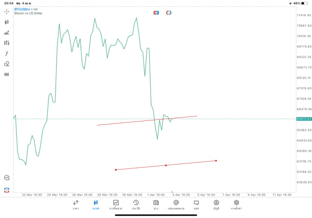 การวาด Trendline H4 Crypto BTCUSD application Meta trader 5 หรือ mt5 โบรกเกอร์ forex exness