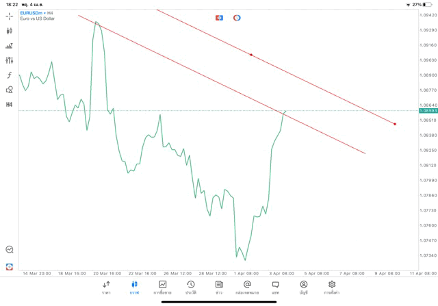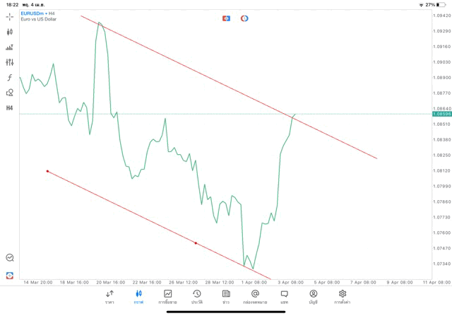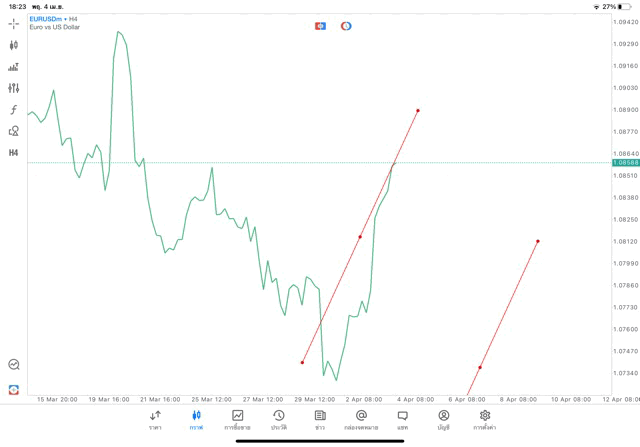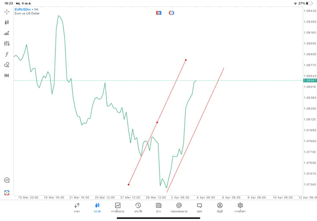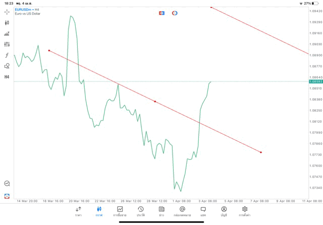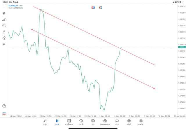 การวาด Trendline H4 Forex EURUSD application Meta trader 5 หรือ mt5 โบรกเกอร์ forex exness