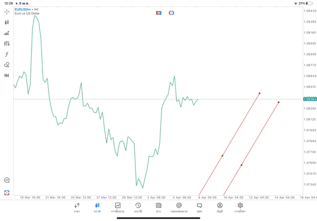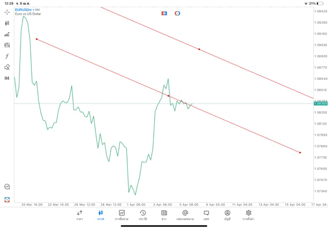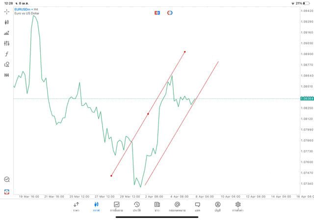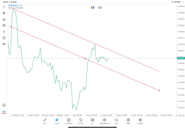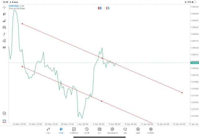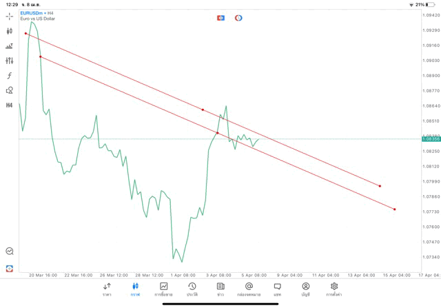 การวาด Trendline H4 Forex EURUSD application Meta trader 5 หรือ mt5 โบรกเกอร์ forex exness