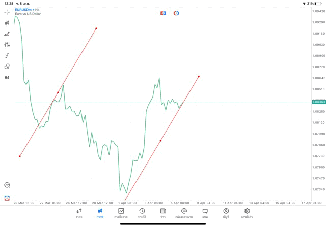 วิธีเปลี่ยน Timeframe และ เพิ่มเส้น Trendline แอพเล่นหุ้น mt5 – คลิ๊ก –