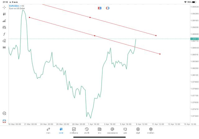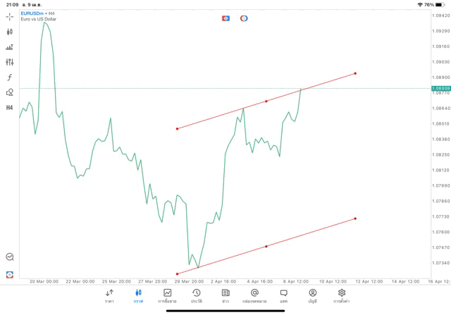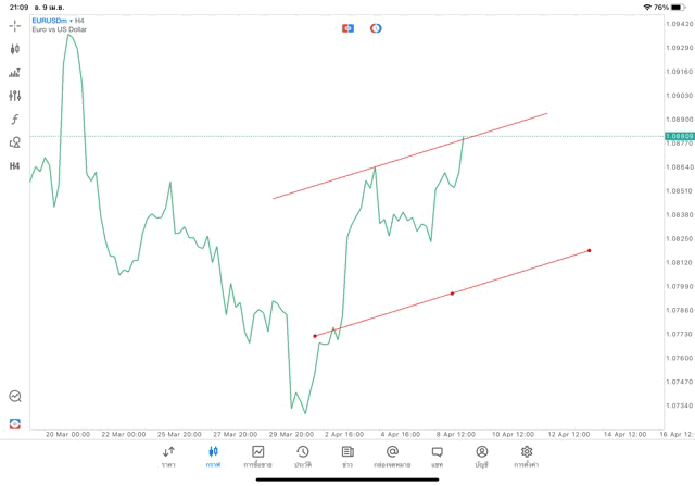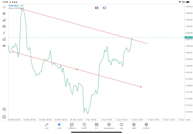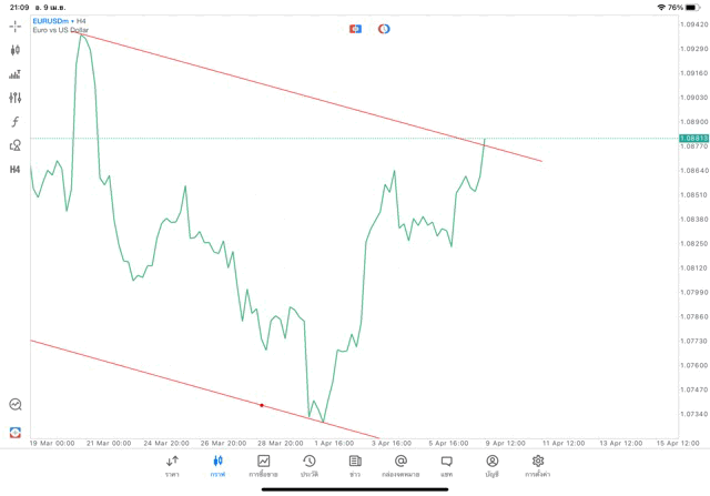 การวาด Trendline H4 Forex EURUSD application Meta trader 5 หรือ mt5 โบรกเกอร์ forex exness