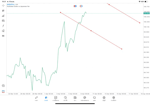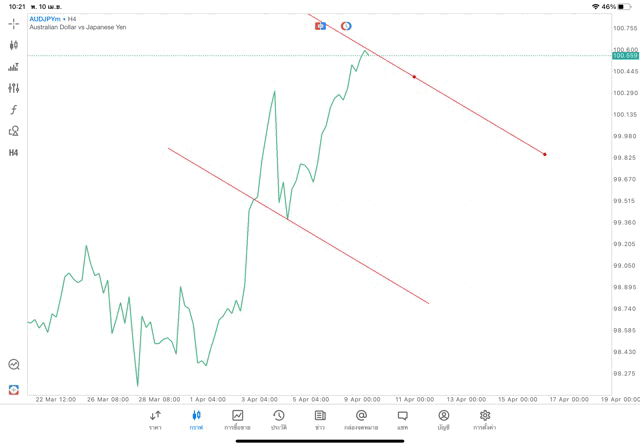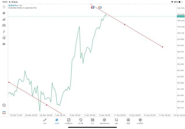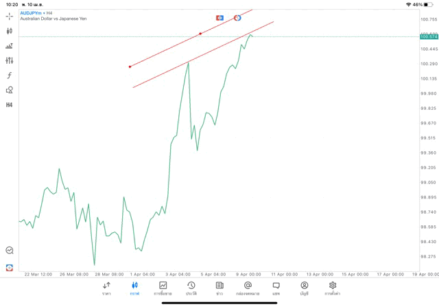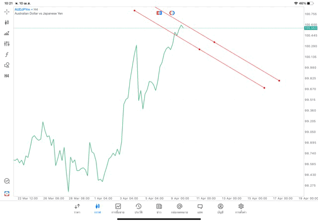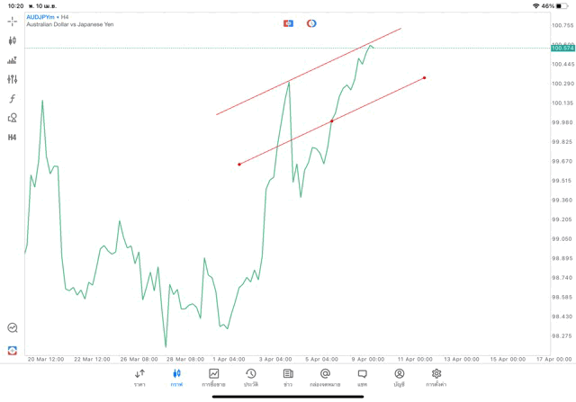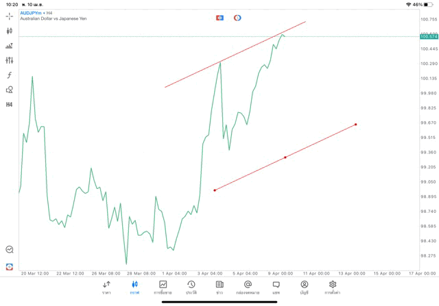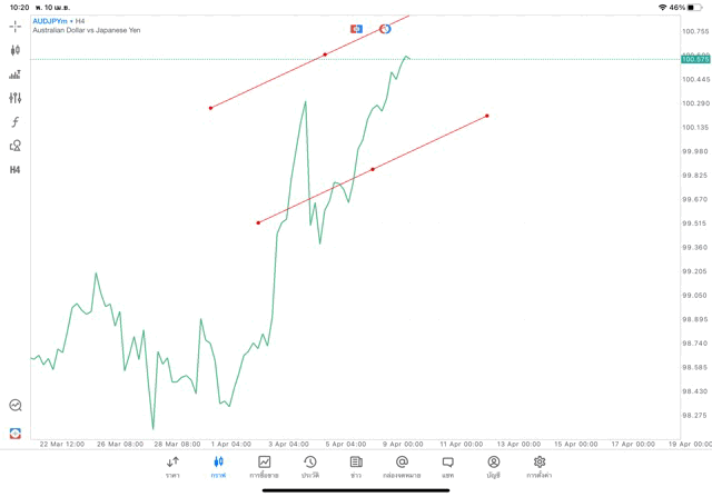 การวาด Trendline H4 Forex AUDJPY application Meta trader 5 หรือ mt5 โบรกเกอร์ Forex exness