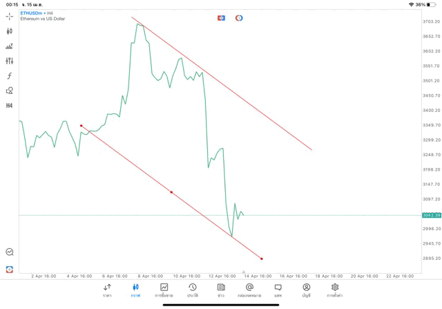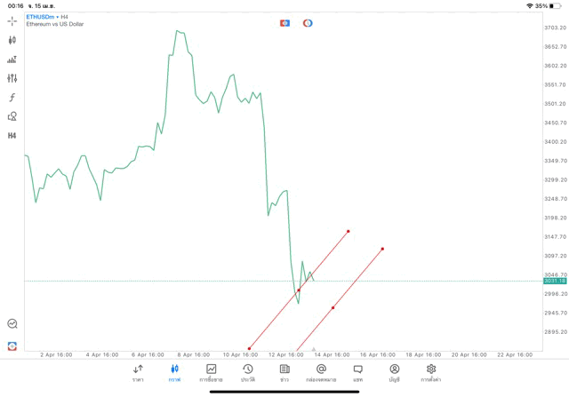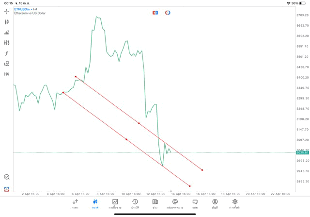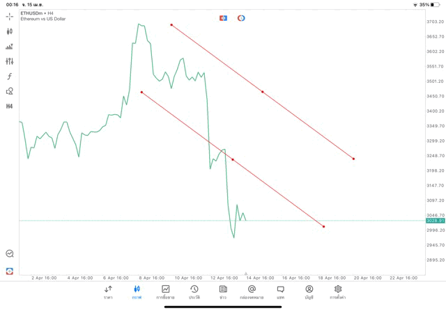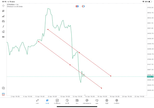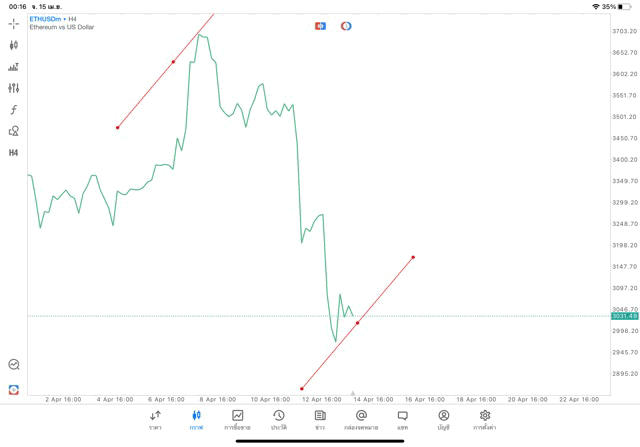 การวาด Trendline H4 Crypto ETHUSD application Meta trader 5 หรือ mt5 โบรกเกอร์ forex exness